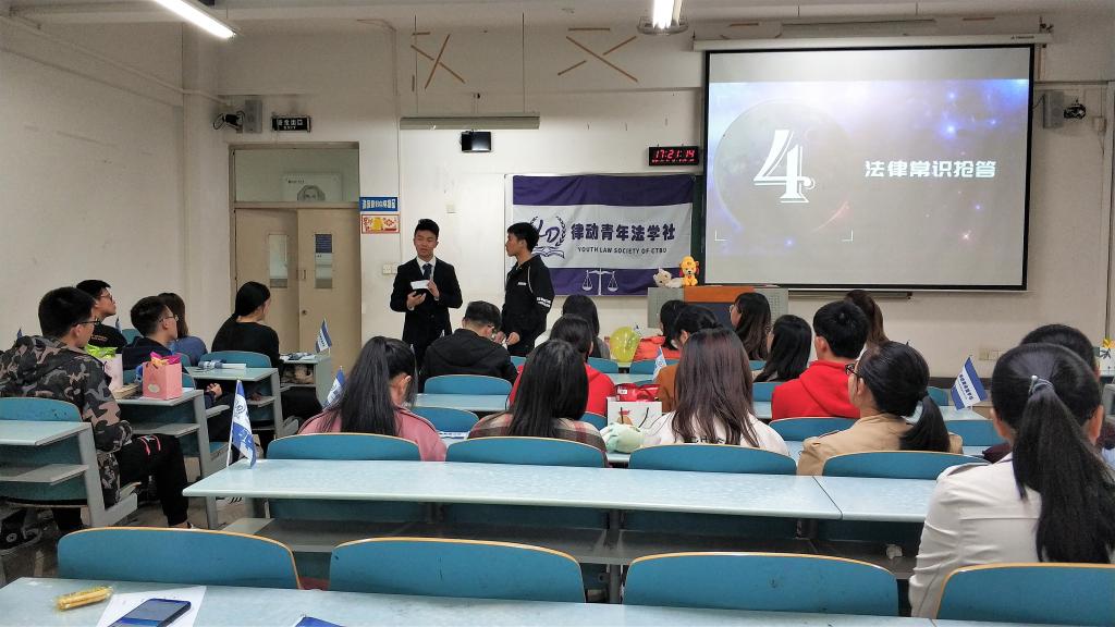 在体现法学特色的活动之外,大会还穿插了数个游戏环节,美妙旋律伴奏下的击鼓传花,见证了成员的多才多艺;趣味横生的你划我猜,增进了成员之间的默契与配合;紧张刺激的法律常识抢答,表现了大家对法学的热情与对法学社的期待。